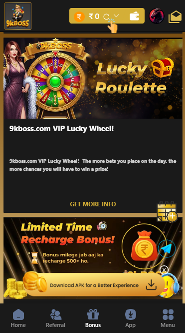 For new users in India, 9KBoss provides an attractive welcome bonus: Bet ₹150 and unlock up to ₹12,000 in free spins. Here's how to activate this offer: